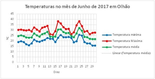 Temperatura mínima mais baixa: 15.6ºC (dias 29 e 30)