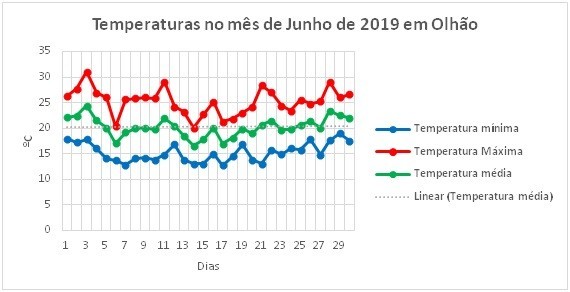 Temperatura mínima mais alta: 19.0ºC (dia 29)