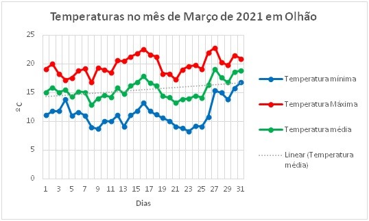 Temperatura mínima mais alta: 15.8ºC (dias 30 e 31)